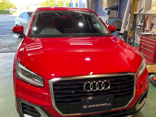 アウディ Q2のボディーにガラスコーティング、窓ガラスに撥水コーティングを施工しました。