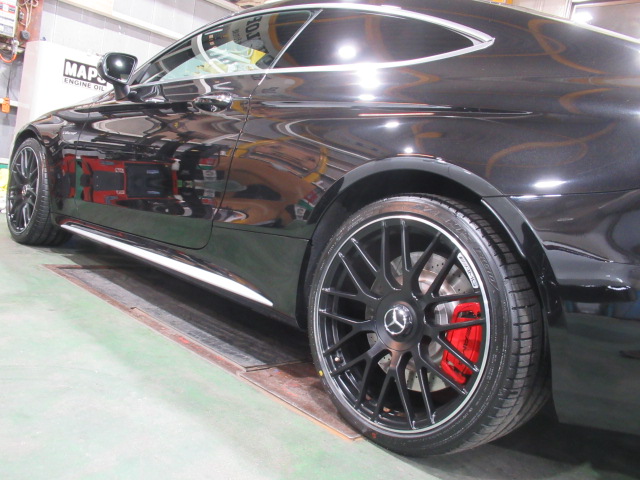 ベンツC63 AMG にセラミックコーティング・ウィンドウ撥水コーティング・