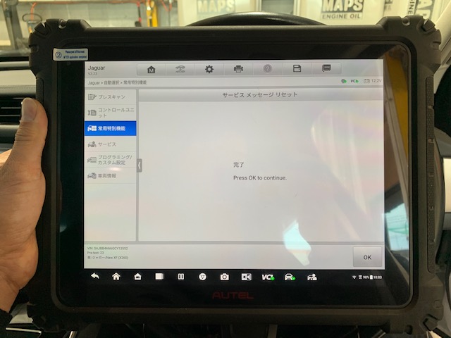 ジャガー XF オイル交換と交換後のメンテナンスリセットの作業です。