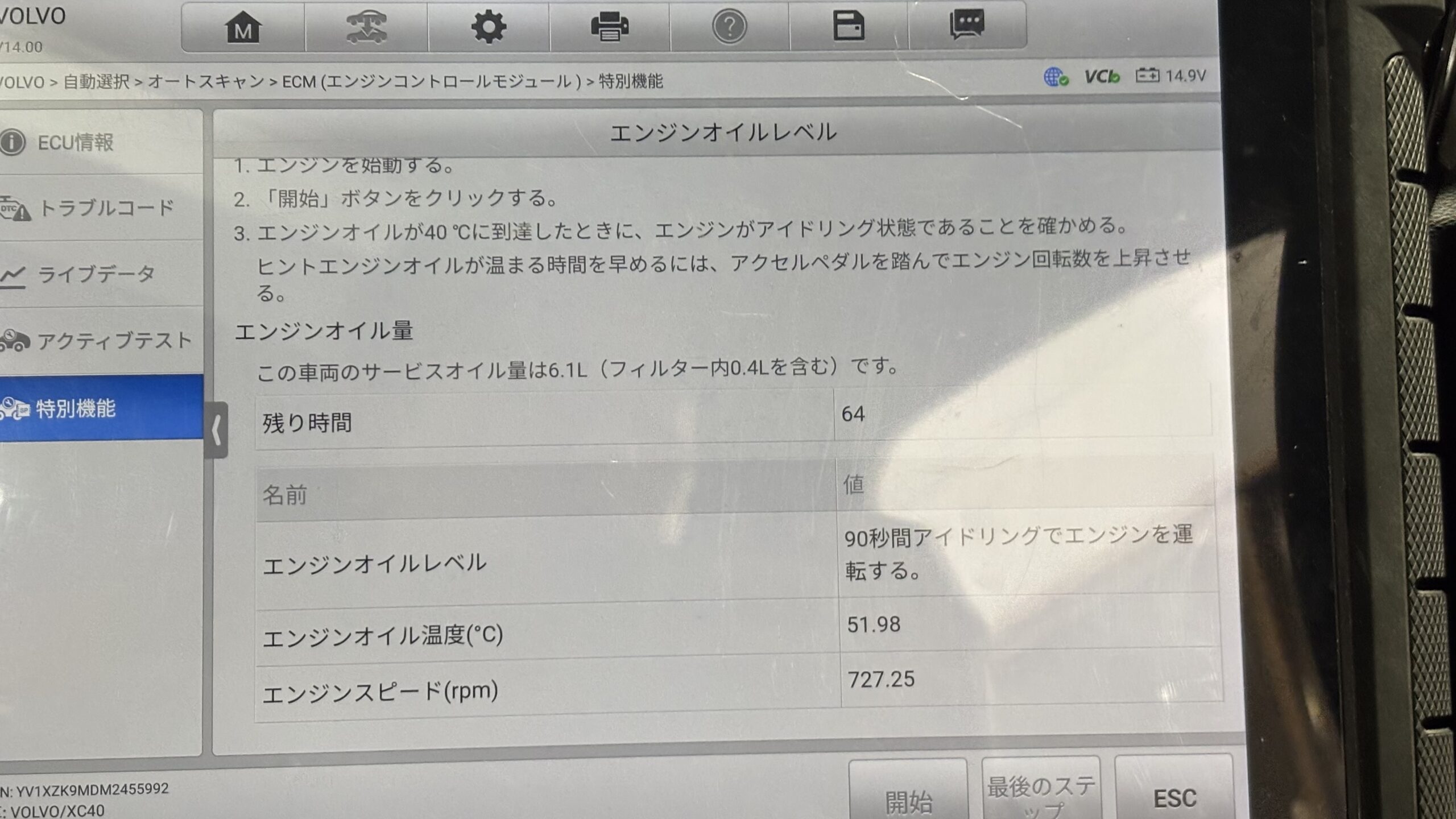 ボルボ XC40のオイル、エレメント交換とメンテナスリセット作業の紹介です。