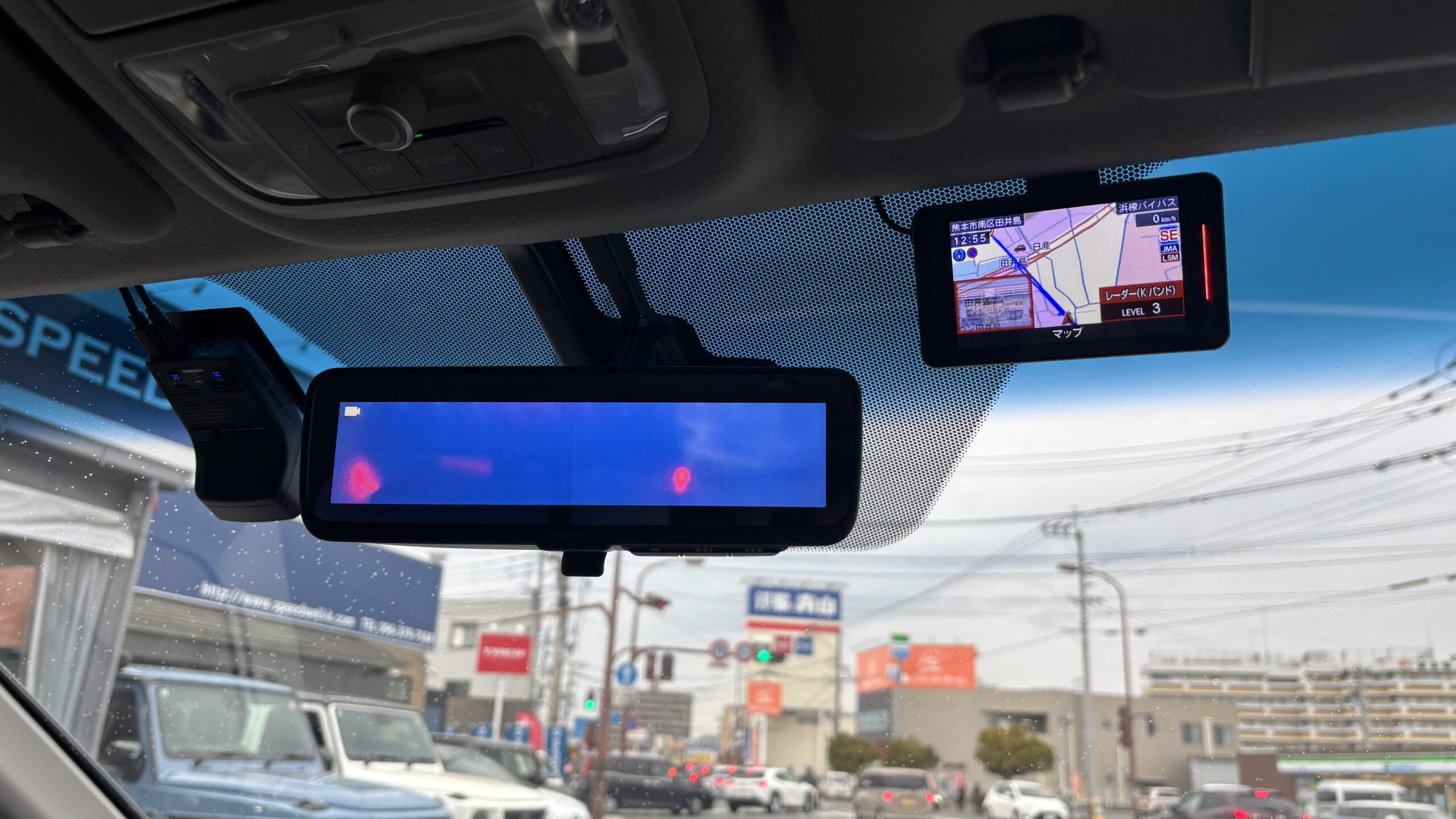 どちらの商品もフロントガラス上部に取り付けができます。