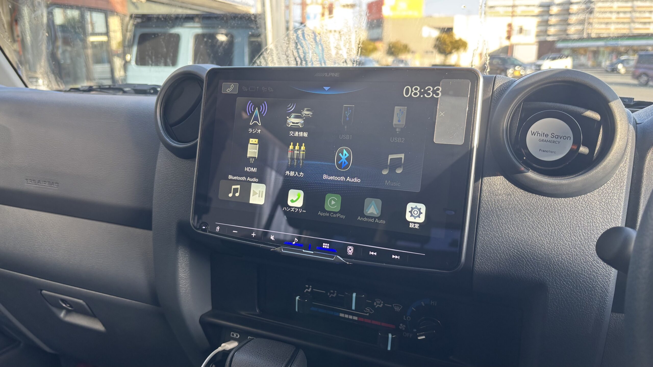 オーディオレスのランクル70ですが、最近ではナビ、テレビ機能がなく、CarPlayメインのディスプレイオーディオが人気です。